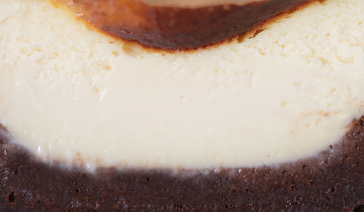 İpeksi iç dokusu ve karamelize olmuş hafif yanık üst katmanı Johann Sebastian tadı ile aynı. Lakin Çikolata seven damaklara da hitap edecek bir brownie katmanını San Sebastianın dibine serdik. Katmanlı bir lezzet yarattık.