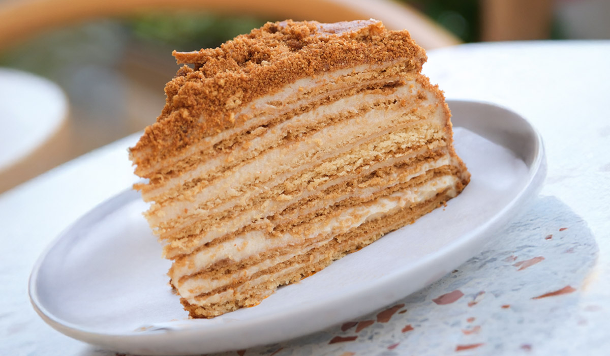 En az 8-10 kat incecik hamurdan oluşur. Her bir katman, yüksek kaliteli çiçek balı ile özenle hazırlanır ve fırında altın sarısı bir renk alana kadar pişirilir. Katmanların arasına sürülen özel krema; bisküvi dokusundaki katları yumuşatarak ağızda eriyen bir yapıya dönüştürür. Medovik'in gerçek lezzeti, yapıldıktan sonra en az 24 saat dinlendirilmesinde saklıdır. Bu süreçte krema ve ballı katmanlar birbirine geçer, ortaya nemli ve bütünleşmiş bir lezzet çıkar. Şekerden ziyade balın o karakteristik ve derin aroması ön plandadır. Onlarca katmandan oluşmasına rağmen, kremanın hafifliği sayesinde asla ağır bir his bırakmaz. Her lokmada el yapımı pastaların o sıcak, samimi ve kaliteli dokusunu hissedersiniz.